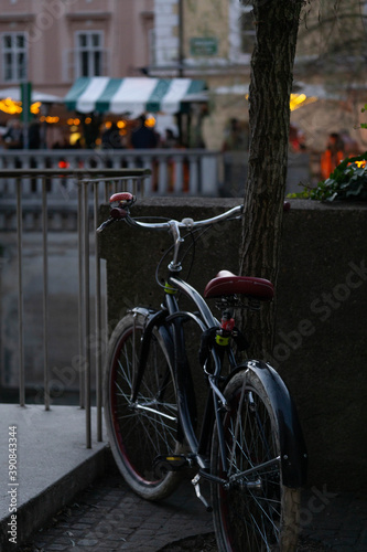 © David, Obraz premium Bike parked on the tree at night in Slovenia