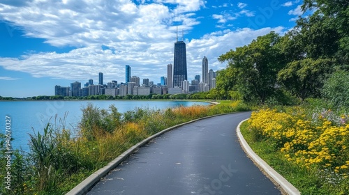 © Togrul, Obraz premium Bike path by downtown Chicago