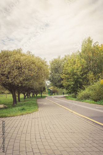 © alexey351, Fototapeta premium Bike path in the park. Afalted road.