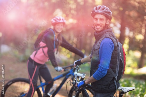 Obraz premium Biker couple standing together