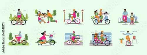 © roundsquid, Obraz premium Biking illustrations set. Flat vector illustration concept.