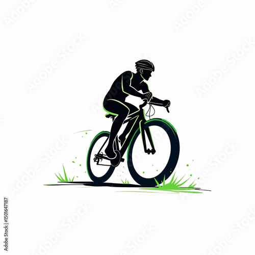 Fototapeta premium Biking Rider in Action Design with Green Accents and Motion Lines