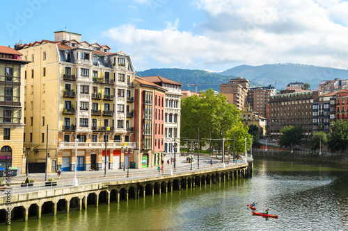Fototapeta premium Bilbao old town view from riverbank, Spain