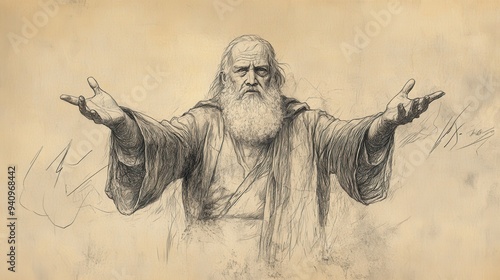 Fototapeta premium Bildad’s Contrast - Biblical Illustration of Bildad Highlighting the...