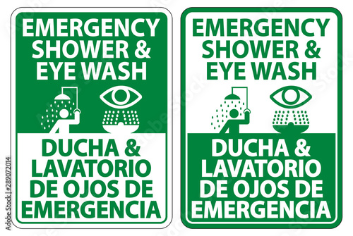 © Seetwo, Fototapeta premium Bilingual Shower & Eye Wash Sign Isolate On White Background,Vector Illustration