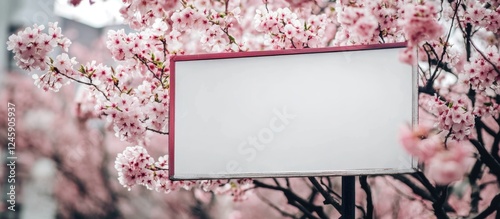 Obraz premium Billboard framed by cherry blossoms with ample space for custom advertising...