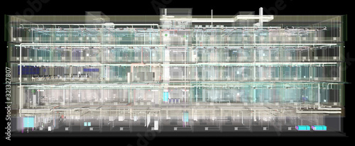 © black_mts, Obraz premium BIM model of an office building with transparent walls