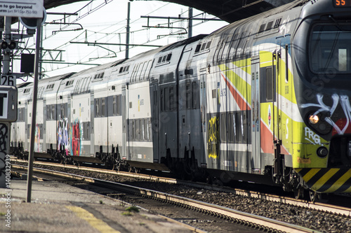 © Captain Nemo, Fototapeta premium binari della ferrovia con treno di passaggio