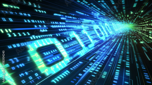 © zolo_era57, Obraz premium Binary code background. Digital Data on blueprint