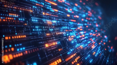 Obraz premium Binary code flowing on a computer screen, representing data analysis