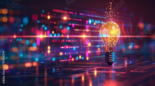 © Pornarun, Obraz premium Binary code light bulb idea concept.
