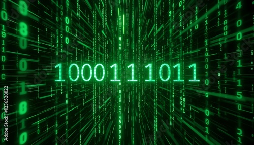 Obraz premium Binary Code Stream: A Glowing Green Digital Matrix