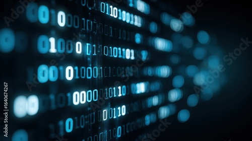 Obraz premium Binary Code Stream Abstract Background: Modern Technology, Cybersecurity, and...