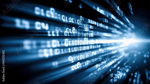 Obraz premium Binary Code Stream Background: Futuristic Digital Data Flow and Technology...