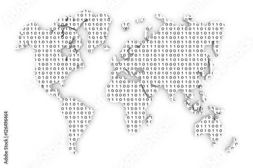© profit_image, Obraz premium binary code world map 3d illustration