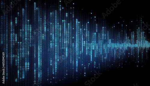Fototapeta premium Binary computer matrix code data stream abstract background showing a coding transmission over the global internet network for cloud storage encryption, Generative AI stock illustration image