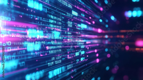 © taweesak, Obraz premium Binary digits in motion, immersive matrix design, glowing neon code