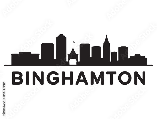 © Nargis, Naklejka premium Binghamton skyline horizontal banner. Binghamton, NY. Vector template for your design. Vector black silhouette. with white background