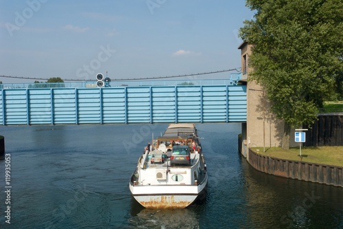 Fototapeta premium Binnenschiff an Ruhrschleuse