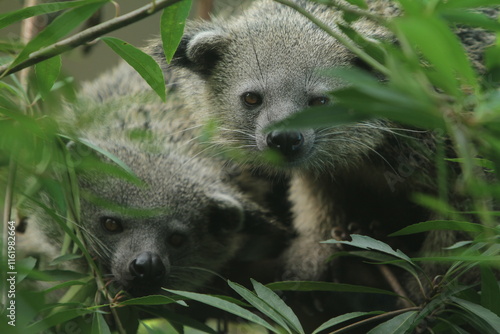 © Pitokung, Obraz premium binturong is watching behind the leaves