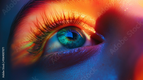 Fototapeta premium Bioengineered Eye: Vibrant Spectrum, Surreal Vision, Colorful Iris, Closeup