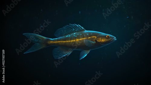 Fototapeta premium Bioluminescent Fish Glowing in a Dark Ocean Trench – Deep-Sea Life Exploration