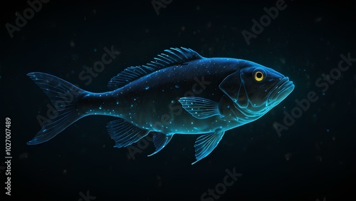 Fototapeta premium Bioluminescent Fish Glowing in a Dark Ocean Trench – Deep-Sea Life Exploration