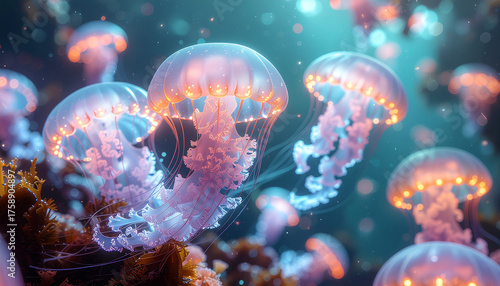 Obraz premium Bioluminescent Jellyfish Abstract