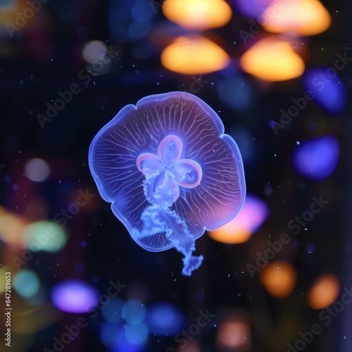Naklejka premium Bioluminescent jellyfish glowing in the dark. AI.