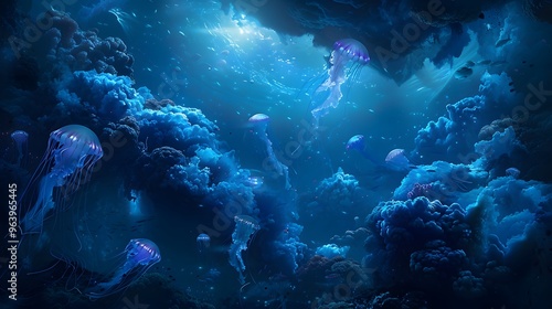 Fototapeta premium Bioluminescent Jellyfish in a Deep Sea Cave