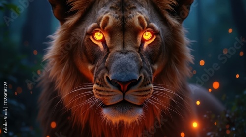 Naklejka premium Bioluminescent Lion's Face Close-up
