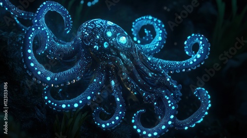 Fototapeta premium Bioluminescent Octopus with Glowing Blue Spots