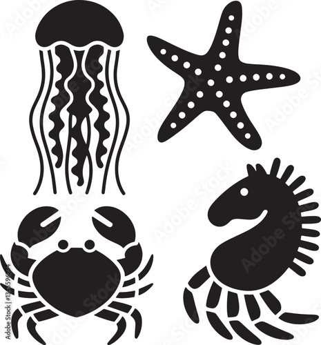 © Masud, Naklejka premium Bioluminescent sea life silhouette vector design