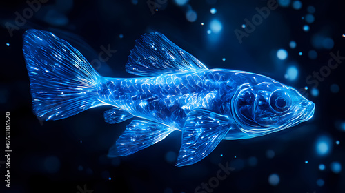 © Thiago, Fototapeta premium Bioluminescent sea sapphire swimming in dark ocean depths. Sapphire Ocean Depths. Illustration