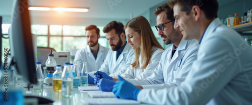 Fototapeta premium Biomedical Research Team Collaborating in Laboratory for Cell Therapy Innovation