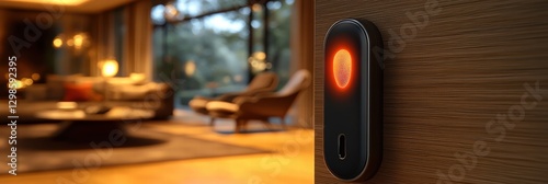 © Oleksandr, Fototapeta premium Biometric lock with fingerprint sensor at home entrance during evening