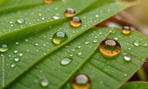Fototapeta premium Biophilic Oasis: Dive into the Refreshing Micro World of Leaf Water Droplets