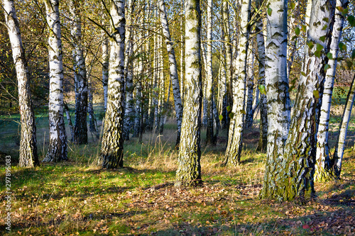 © IreneuszB, Fototapeta premium Birch forest in autumn on a sunny day