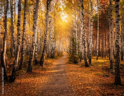 © hyoungjun, Obraz premium Birch Forest in Fall Colors