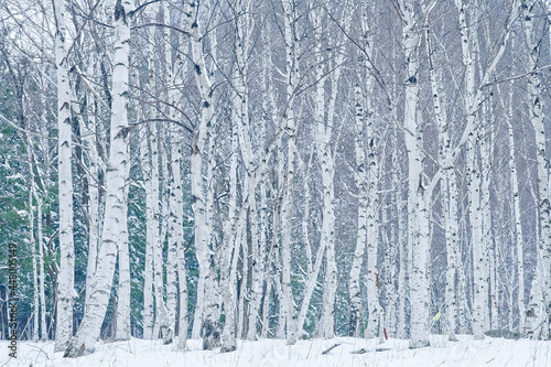 Obraz premium 자작나무숲 겨울 풍경 birch forest winter scenery