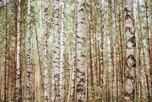Obraz premium Birch Grove background. Autumn forest