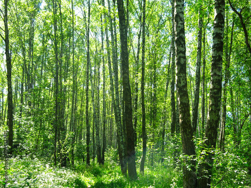 © Lumatis, Obraz premium birch grove with green foliage in early spring