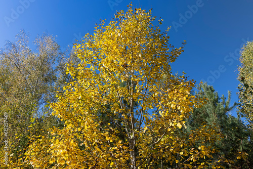 Naklejka premium Birch grove with tall birch trees in autumn
