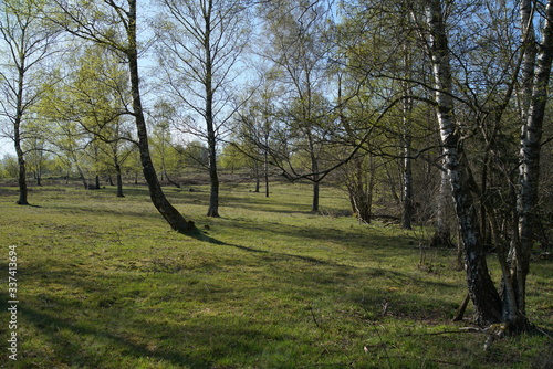 Obraz premium Birch Taiga like forest landscape during spring