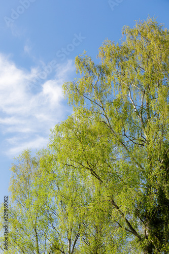 © Juhku, Fototapeta premium Birch tree foliage growing at spring