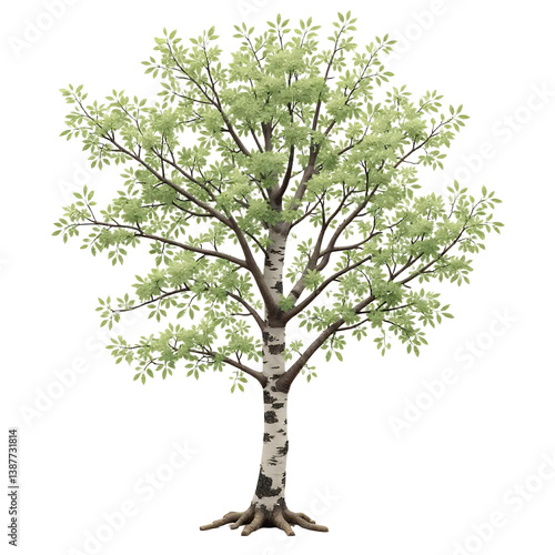 © Saepicture, Obraz premium Birch_Tree_Illustration_Light_Green_Leaves