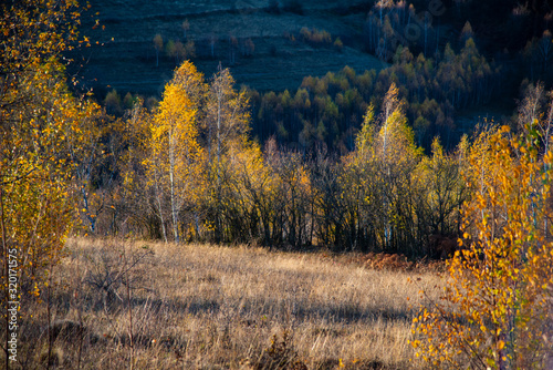 Fototapeta premium Birch tree landscape in the morning autumn