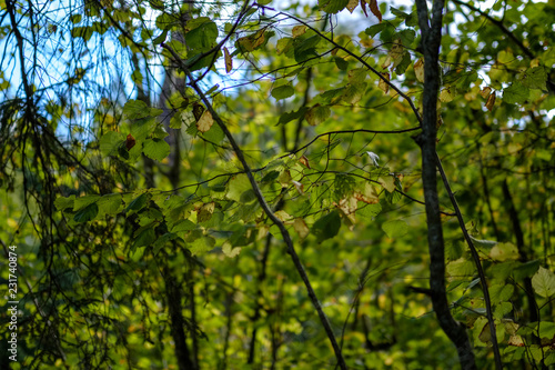 © Martins Vanags, Fototapeta premium birch tree lush in colorful autumn forest