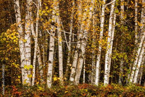 © Drake Fleege, Fototapeta premium Birch tree trunks in fall at Harrington Beach State Park, Belgium, Wisconsin