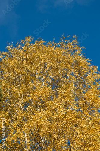Fototapeta premium birch tree with green yellow leaves fall